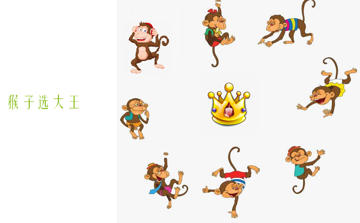 首先将猴子从1到n编号存放在数组中,对猴子的总个数进行循环,循环时将数到编号的猴子从数组删除,将没有数到编号的猴子从原位置移到数组末尾,移动后需将原位置的编号删除。只要判断该编号数组个数大于1都继续循环,直到数组最后只剩下一个编号,那么这个编号就是当大王的猴子